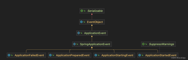 所以SpringApplicationRunListener和ApplicationListener之间的关系是通过ApplicationEventMulticaster广播出去的SpringApplicationEvent所联系。