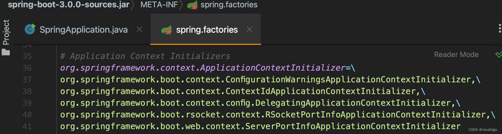 setInitializers((Collection) getSpringFactoriesInstances(ApplicationContextInitializer.class));