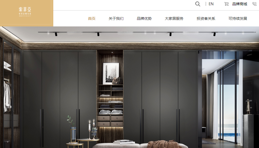 (3) 索菲亚[002572.SZ] 是一家主要经营定制衣柜及全屋配套定制家具的研发、生产和销售的公司。经过多年的经营积累,目前公司定制衣柜及其配套定制家具产品已形成了多种空间、多类品类、多种风格自由搭配组合的产品方案,“索菲亚”已经成为国内定制衣柜的代表品牌。公司凭借量身定做的定制衣柜和壁柜门相结合的崭新产品概念,成功把定制衣柜推向市场并获得中国消费者的认同。公司通过个性化设计及高效运营为顾客提供美好体验,致力于成为值得信赖、全球领先的家居企业,以“用科技和创意轻松装好家,让世界的美融入新的生活”为企业发展使命。