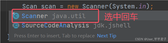 import java.util.Scanner;页面顶部就会出现这一句,这样就完成导包了