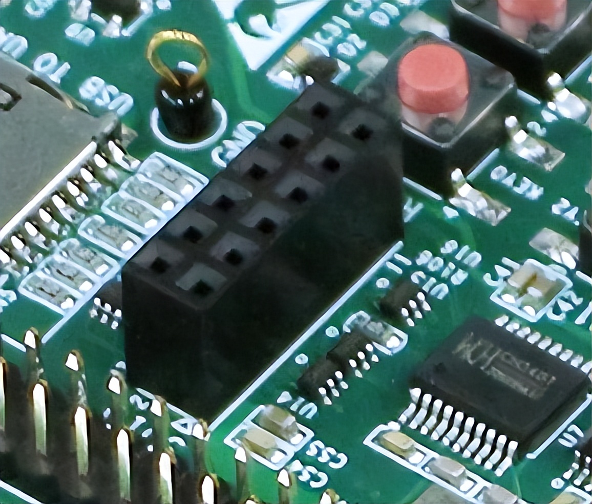 J5为JTAG仿真调试接口,采用20pin简易牛角座连接器,间距2.54mm。