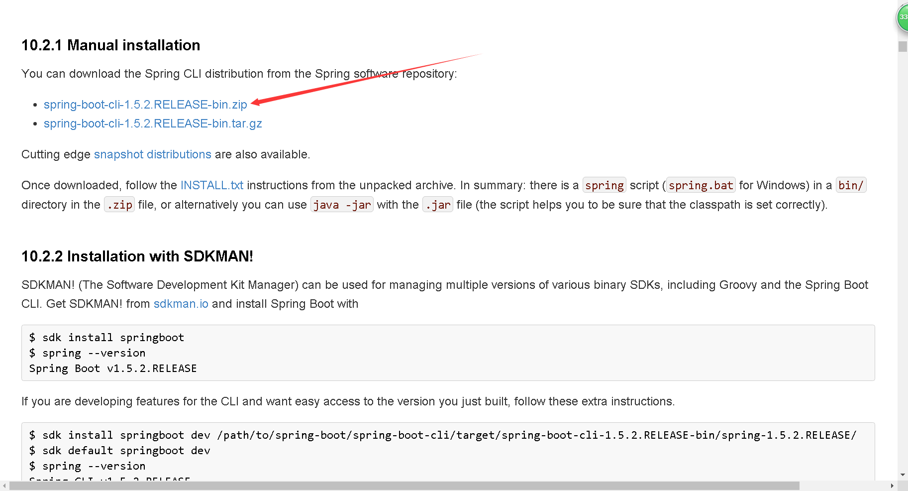 E:\spring-boot-cli-1.5.2.RELEASE-bin\spring-1.5.2.RELEASE\bin就安装完毕了。