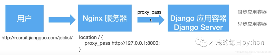 $ gunicorn -w 3 -b 127.0.0.1:8000 recruitment.wsgi:application启动3个worker进程,绑定到本机的8000端口