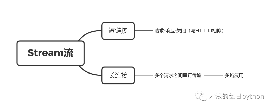 对于HTTP/2支持并发传输请求,不同于HTTP1.1的拉模式,HTTP/2采用主动推送的推模式。这里先介绍下HTTP/2中出现的几个名词,为方便理解,以脑图方式呈现: