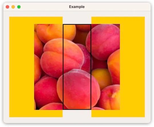 思考下面这个例子,图片视图特别严格(除非他们修改了 resizable 方法),它们需要多少空间就要占用多少空间,在下面这个例子中,图片是 300×300,这也是它们需要绘制自己需要的空间,然而,通过调用 frame(width:100) 子视图只得到了 100pt,父视图就没有办法只能听从子视图的做法吗?并非如此,子视图仍然会使用 300pt 绘制,但是父视图将会布局其他视图,就好像子视图只有 100pt 宽度一样。结果呢,我们将会有一个超出边界的子视图,但是周围的视图不会被图片额外使用的空间影响。在下面这个例子中,黑色边框展示的空间是提供给图片的。