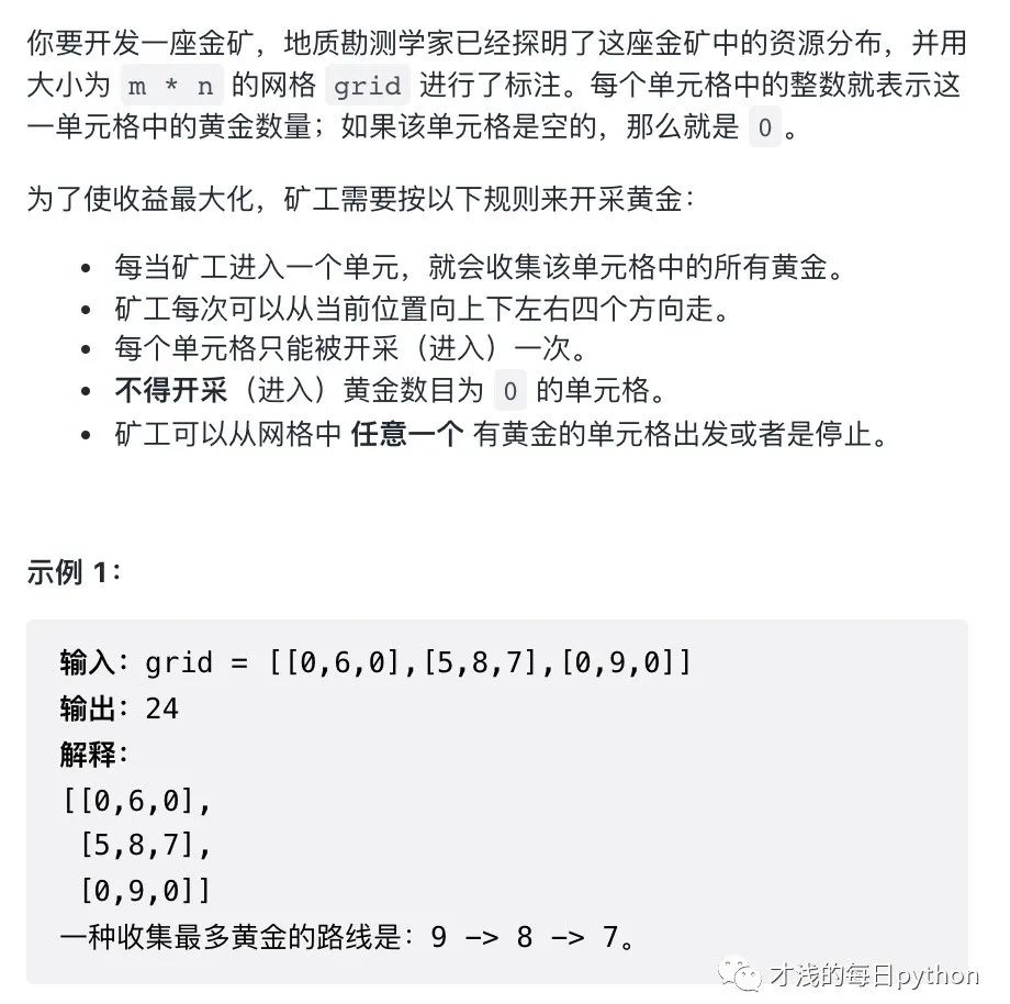 gold += grid[x][y] # gold用来存放已有黄金数,初始为0