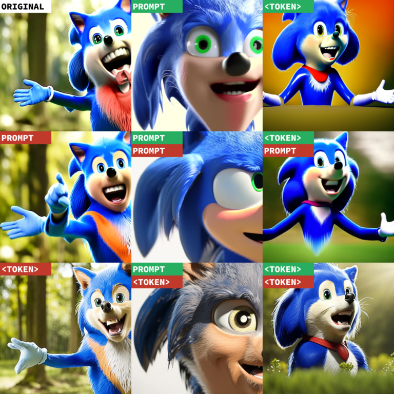 在这个示例中,negative prompt 破坏了 Ugly Sonic,因为把他的人类牙齿一步步去除了!
