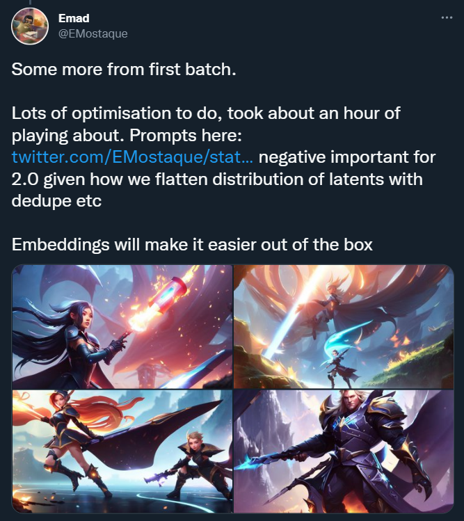 一些人指出,新模型的训练样本减少了NSFW(NotSuitableForWork)图像的数量,因而导致了这些变化(因为新模型使用NSFW filter 过滤掉一些不可描述的内容)。但在我看来,主要问题在于新版本使用了 OpenCLIP。采用新的文本编码器意味着适用 Stable Diffusion 早期版本的一些假设和 prompt hack 可能失效。另一方面,这又可能引发新的 prompt hack。比如,Stability AI 首席执行官 Emad Mostaque 提到,考虑到模型训练的方式,否定形式的 prompt(negative prompt)应该会更有效。尽管这仍是理论,但真正的实践效果往往更好。