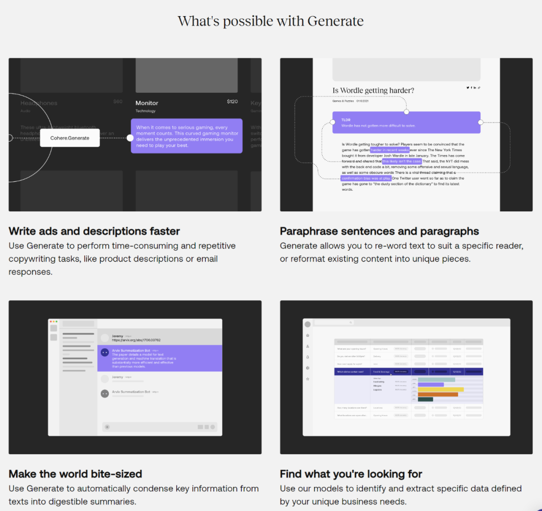 Cohere 成立于 2019 年,开发人员可以使用其开发的自然语言处理软件为企业构建人工智能应用程序,包括聊天机器人工具和其他可以理解人类语音和文本的功能。