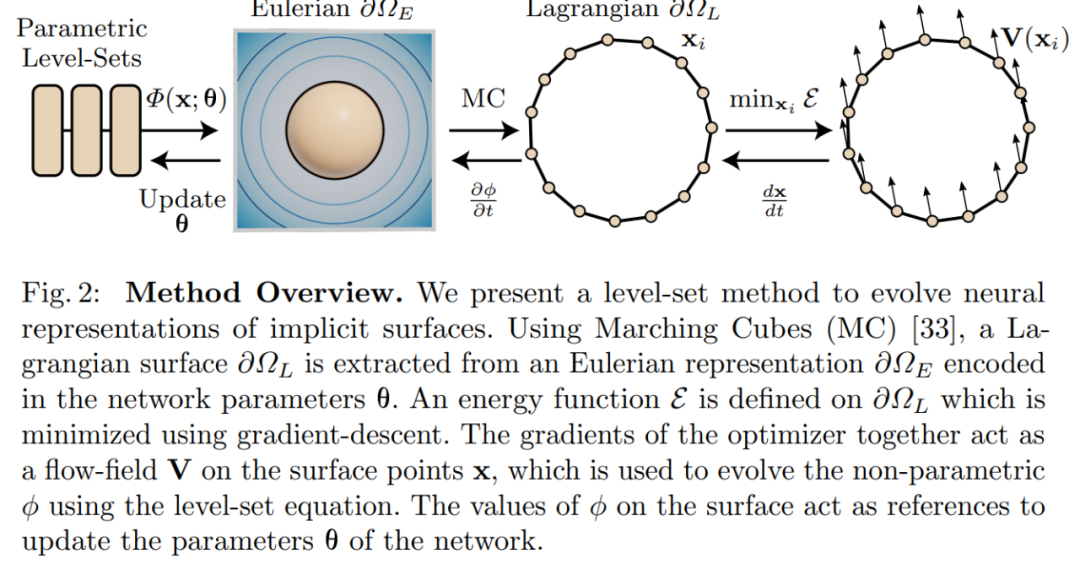 摘要:基于坐标的神经网络参数化隐式表面已经成为几何的有效表示,它们高效充当了参数水平集,其中零水平集定义了感兴趣的表面。研究者提出了一个框架,允许将为三角形网格定义的变形操作应用于这类表面。这些操作中的一些可以被视为在显式表面引起瞬时流场的能量最小化问题。他们的方法通过扩展水平集的经典理论,利用流场来实现参数化隐式表面变形。