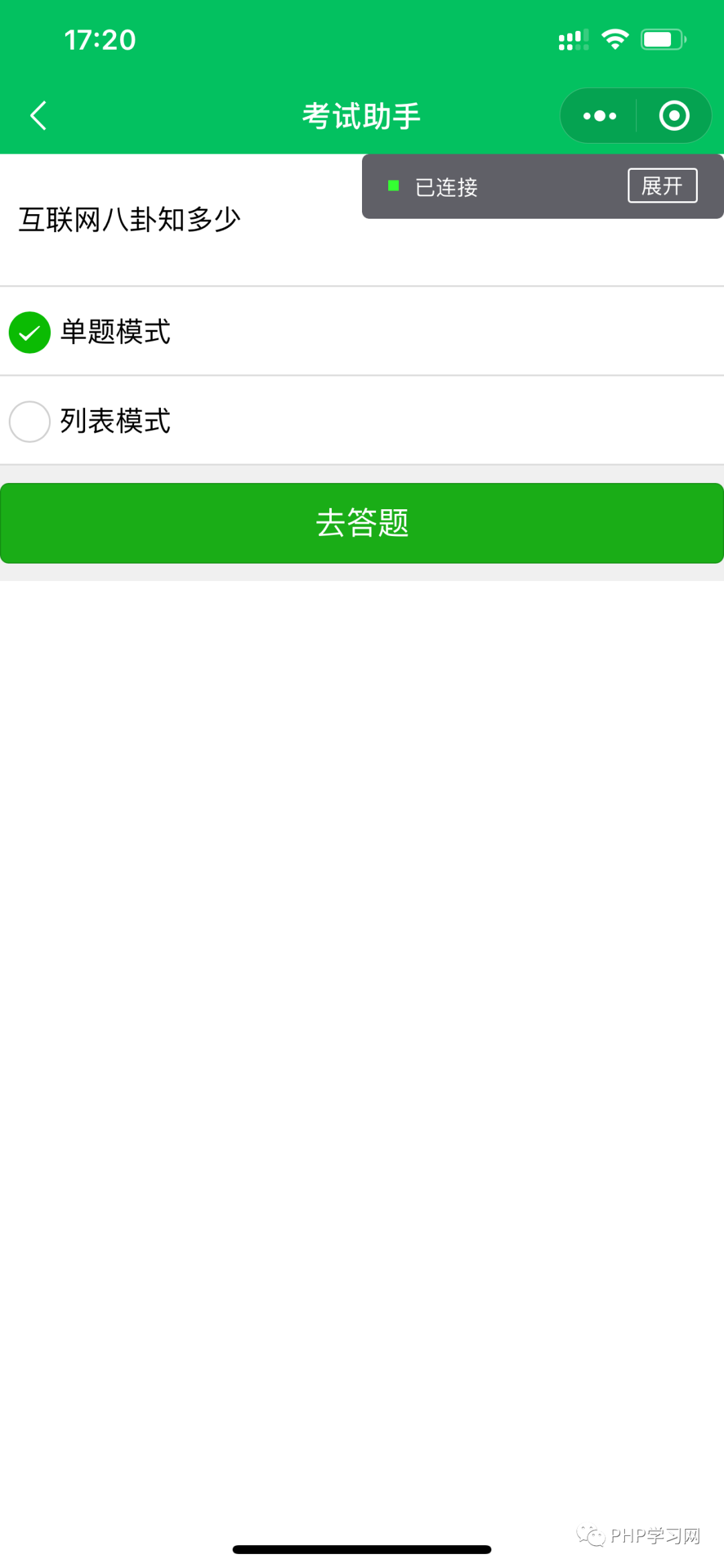 今天看到一个在线答题小程序,跑起来看了看,总体效果是有的,接口采用了Yii2编写,但是没有做后台,若是你想二次开发,可以考虑考虑这个小程序。