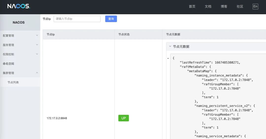 {"name":"DEFAULT_GROUP@@nacos.naming.serviceName","groupName":"DEFAULT_GROUP","clusters":"","cacheMillis":10000,"hosts":[{"instanceId":"20.18.7.10#8080#DEFAULT#DEFAULT_GROUP@@nacos.naming.serviceName","ip":"20.18.7.10","port":8080,"weight":1.0,"healthy":true,"enabled":true,"ephemeral":true,"clusterName":"DEFAULT","serviceName":"DEFAULT_GROUP@@nacos.naming.serviceName","metadata":{},"instanceHeartBeatInterval":5000,"instanceIdGenerator":"simple","ipDeleteTimeout":30000,"instanceHeartBeatTimeOut":15000}],"lastRefTime":1667400719947,"checksum":"","allIPs":false,"reachProtectionThreshold":false,"valid":true}同样我们也可以使用nacos的配置中心功能,发布配置
