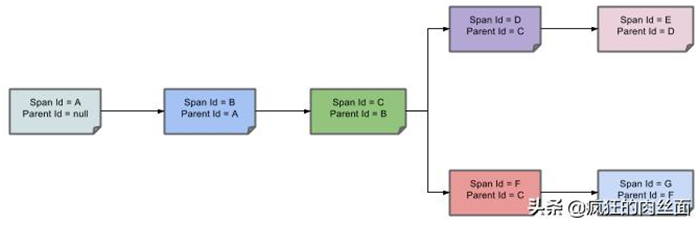 在调用服务的链路上每个被调用的服务节点都会通过 Parent ID 来记录发起调用服务的 Span ID,由于 Span ID 是唯一确认最小服务单元的,所以知道了 Parent 的 Span ID 也就知道了谁调用自己了。