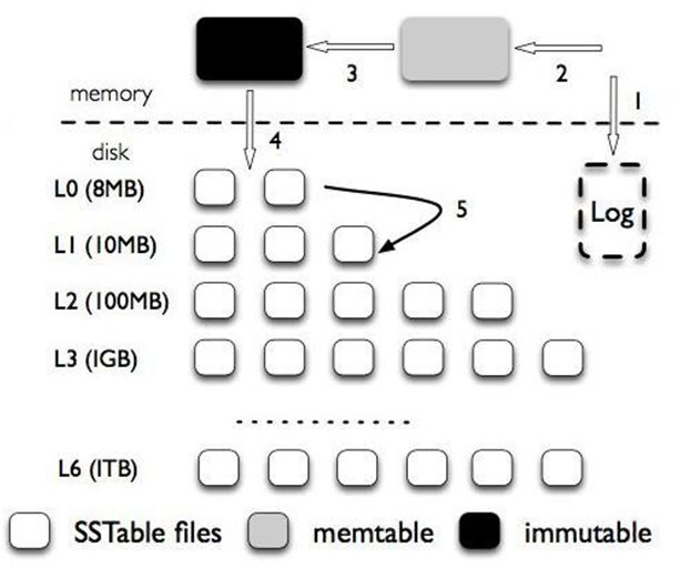 来看一个 LevelDB 的例子,方便我们理解,LSM-tree 被分成三种文件: