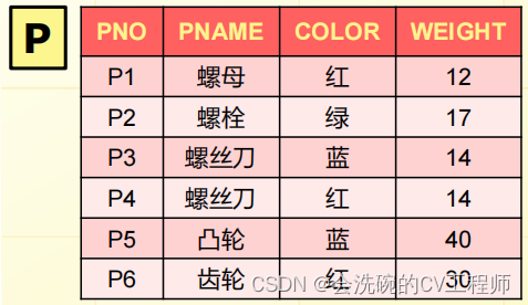 insert into LYL_116_week7p values('P6','齿轮','红',30)