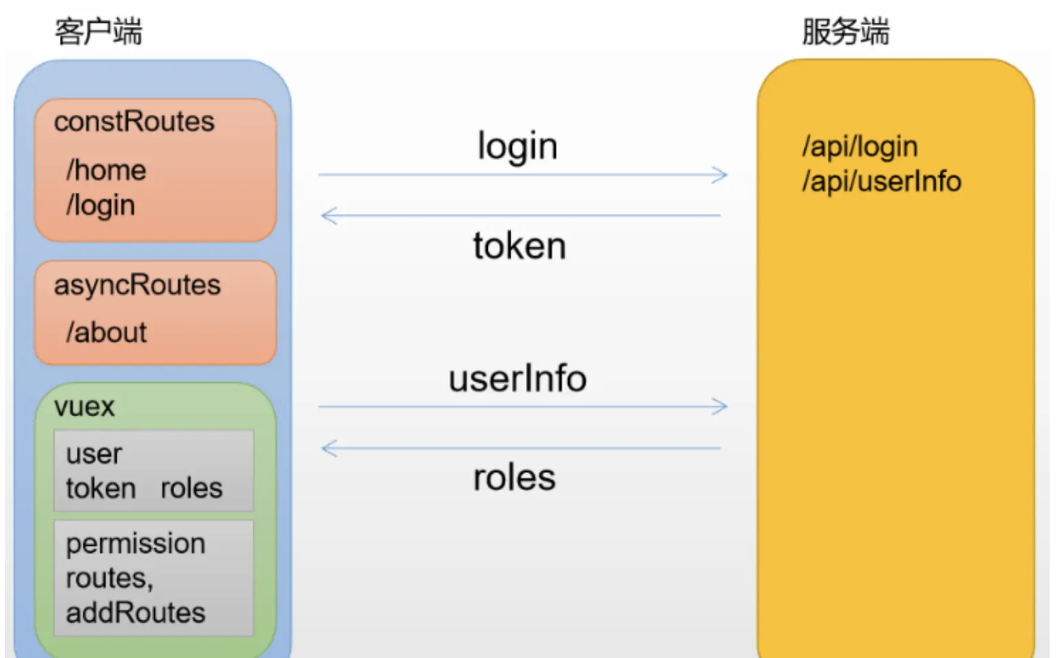 asyncRoutes数组,需要认证的页面在其路由的meta中添加一个roles字段,等获取用户角色之后取两者的交集,若结果不为空则说明可以访问。此过滤过程结束,剩下的路由就是该用户能访问的页面,最后通过router.addRoutes(accessRoutes)方式动态添加路由即可addRoutes动态添加路由信息实现一个指令,例如v-permission,将按钮要求角色通过值传给v-permission指令,在指令的moutned钩子中可以判断当前用户角色和按钮是否存在交集,有则保留按钮,无则移除按钮可能的追问