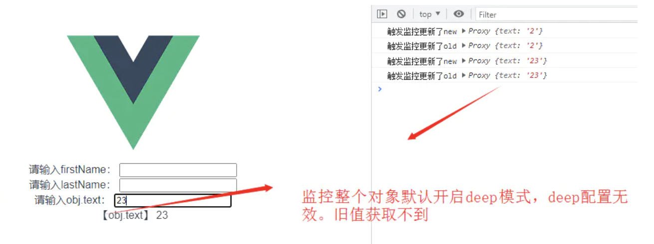 reactive对象,从上面的图可以看到 deep 实际默认是开启的,就算我们设置为false也还是无效。而且旧值获取不到。getter,看下图