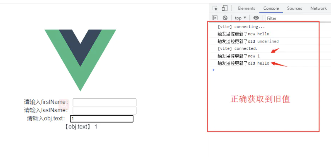 // 这里我们不使用firstName.value/lastName.value ,相当于是监控整个ref,对应第四点上面的结论