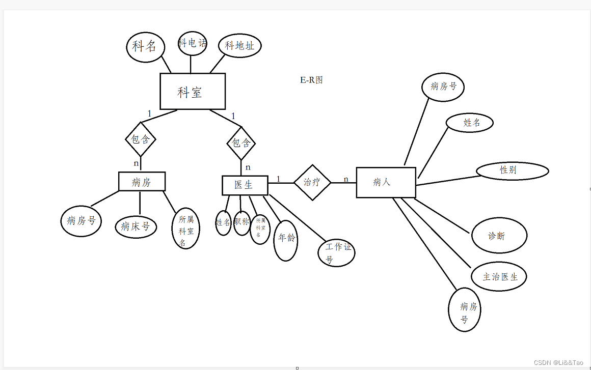 病人(病历号,姓名,性别,诊断,主治医生,病房号,工作证号)