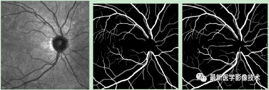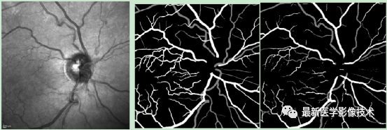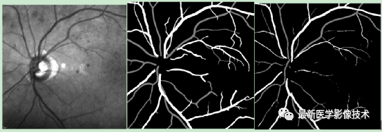 4、验证集分割结果,左图是眼底图像,中间是金标准图像,右图是分割图像