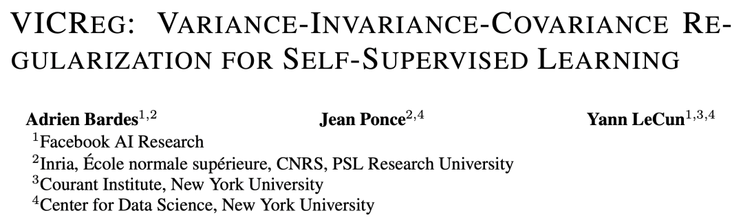 论文标题:VICREG: VARIANCE-INVARIANCE-COVARIANCE REGULARIZATION FOR SELF-SUPERVISED LEARNING