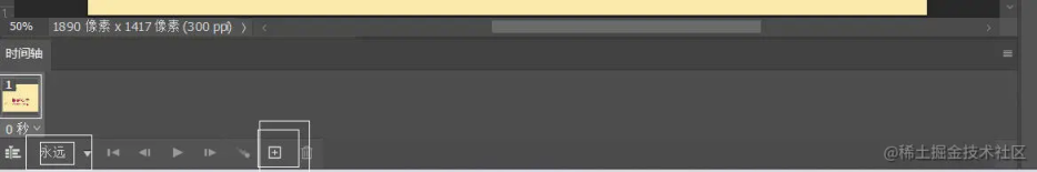 打开 Photoshop 界面,新建任意大小的纸张,最好是横向的,给他填充一个背景色,这里我就选择了比较浅一点的黄色,在窗口才拦下,打开时间轴,如果你的十天左右东西,可以在右上方三个横杠处,删除时间轴,如下图,新建帧动画,就会出现下面的面板