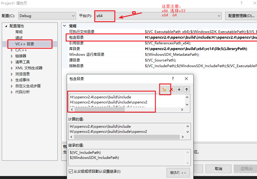 x64:H:\opencv2.4\opencv\build\x64\vc14\lib x86 H:\opencv2.4\opencv\build\x86\vc14\lib