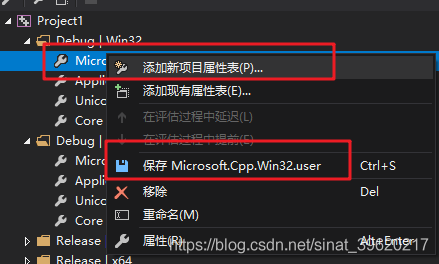 opencv_videostab2413d.lib打开Debug|Win32,右键其下面的Microsoft.Cpp.Win32.user,然后点击保存Microsoft.Cpp.Win32.user。这样下次新建工程项目时便自动调用了该设置,不需要再次配置。如图。
