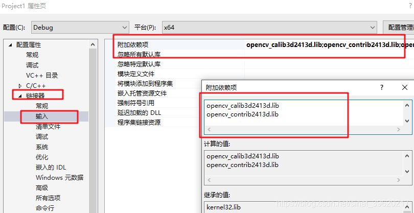 添加OpenCV2.4.9的附加依赖库到链接器->输入->附加依赖项.添加界面如图