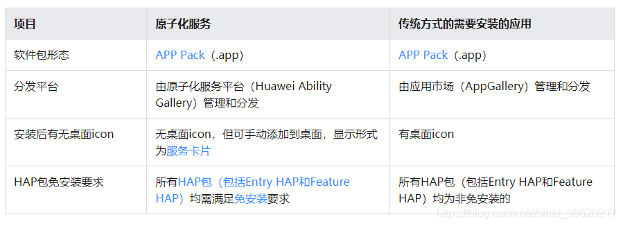 原子化服务由1个或多个HAP包组成,1个HAP包对应1个FA或1个PA。每个FA或PA均可独立运行,完成1个特定功能;1个或多个功能(对应FA或PA)完成1个特定的便捷服务。