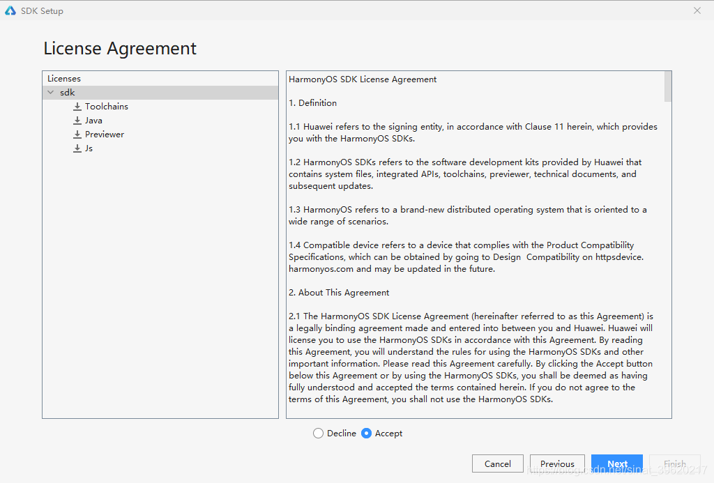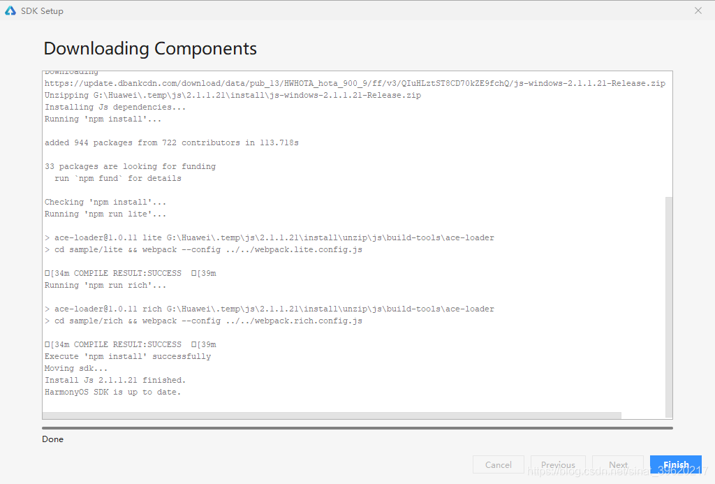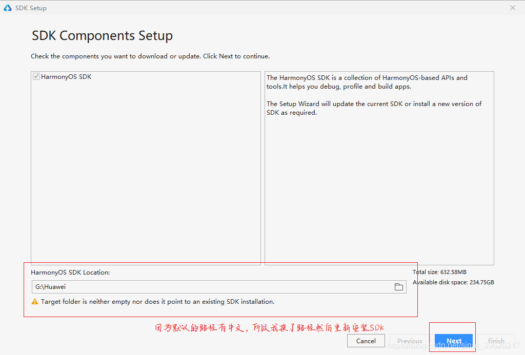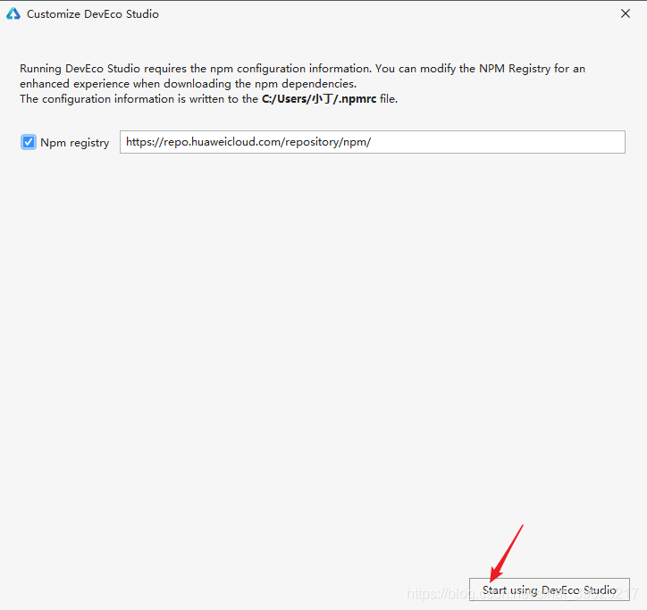 nmp配置界面,不用修改路径,直接点击“Start Using DevEco Studio”。配置HarmonyOS SDK,