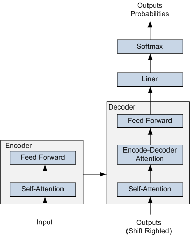 ERNIE 采用了 Transformer Encoder 作为其语义表示的骨架。Transformer 是由论文Attention is All You Need 首先提出的机器翻译模型,在效果上比传统的 RNN 机器翻译模型更加优秀。Transformer 的简要结构如图1所示,基于 Encoder-Decoder 框架, 其主要结构由 Attention(注意力) 机制构成: