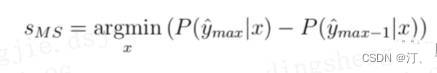 最小置信度是最简单,最常用的方法,它提供预测顺序的排名,这样可以以最低的置信度对其预测标签进行采样。
