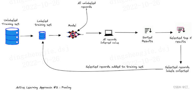 在基于池的抽样中,训练样本从一个大的未标记数据池中选择。从这个池中选择的训练样本由oracle标记。