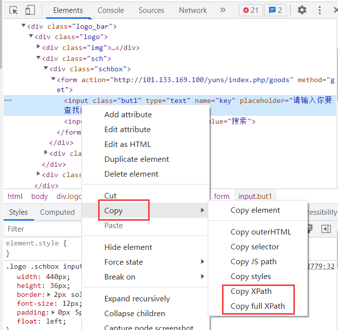 使用浏览器开发者工具直接复制xpath路径值(偷懒的方法,不推荐在学习的时候使用):