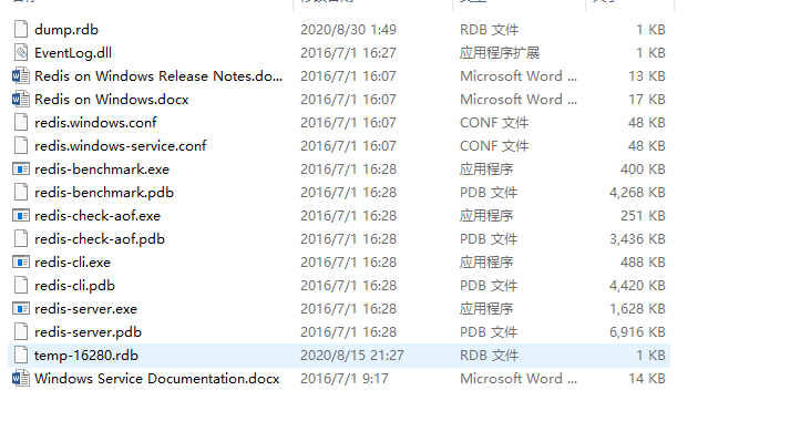 在这个目录当中,主要需要学习的是两个一个是redis-server.exe,这个是 redis 数据库服务端本身,还有一个是redis-cli.exe这个是 redis 的客户端工具,使用它就能够连接上 redis 数据库,redis.windows.conf为 redis 的配置文件,启动的时候可选