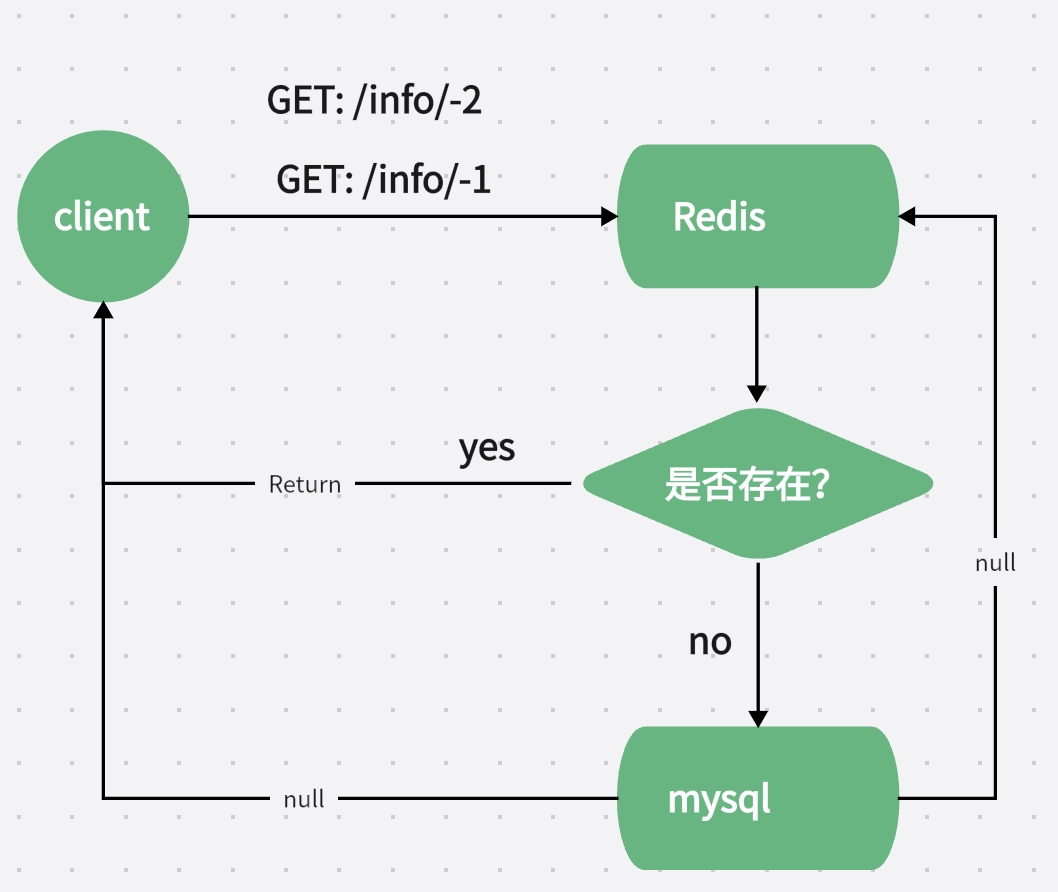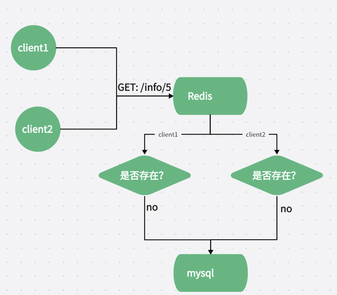 这个是恶意攻击导致的,黑客通过伪造非法的id,查询数据库中不存在的key,导致经过redis缓存时:判断key不存在,则直接查DB,最终导致所有请求全部达到了DB中,造成缓存穿透