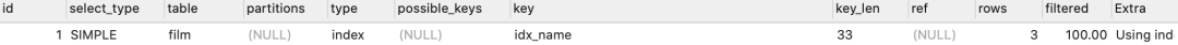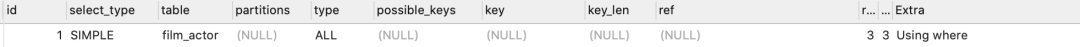 先执行exlpain语句,EXPLAIN SELECT * from film