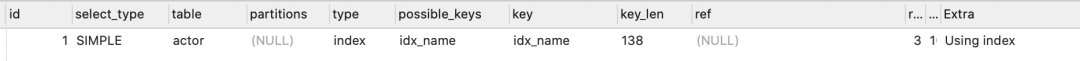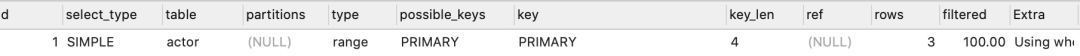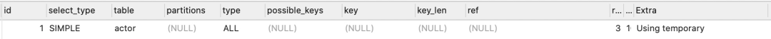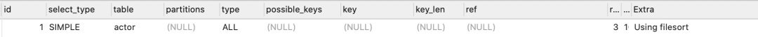 扫描全表,通常情况下,是没有创建索引,需要增加索引优化explain select * from actor;