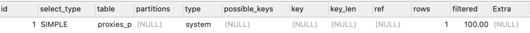 可以看到查询类型为PRIMARY已经达到了system级别,它是从派生表(临时表)中查询,并且派生表中只有一条记录,也能够达到system级别。