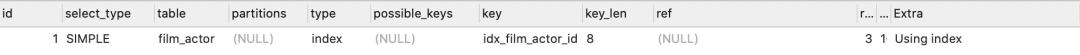 explain select film_id from film left join film_actor on film.id = film_actor.film_id;