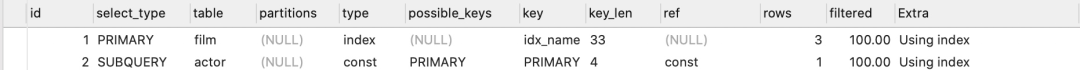 最外层查的是film表的,所以film对应的查询类型就是primary;