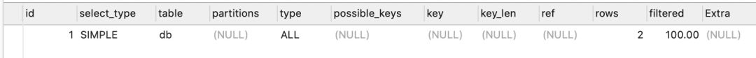 type列的值分别为: NULL>system > const > eq_ref > ref > range > index > ALL; 执行效率依次递减。