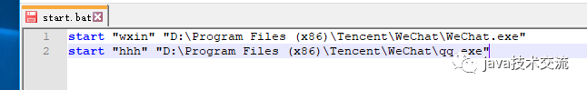 点击一下就可以启动微信了,想一次性启动多个程序在下一行添加对应的命令就可以,像这样: