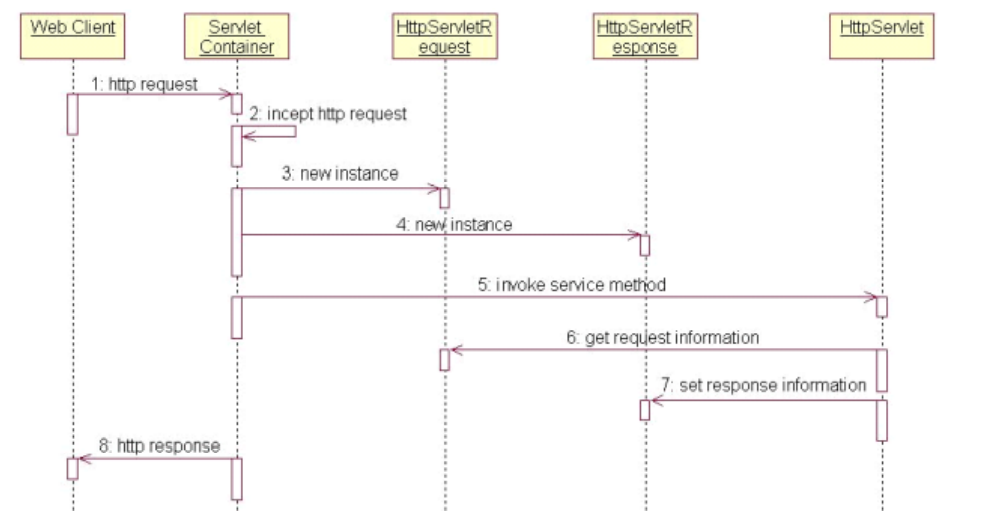 下面我们描述一下 Tomcat 与 Servlet 是如何工作的,看看下面的时序图: