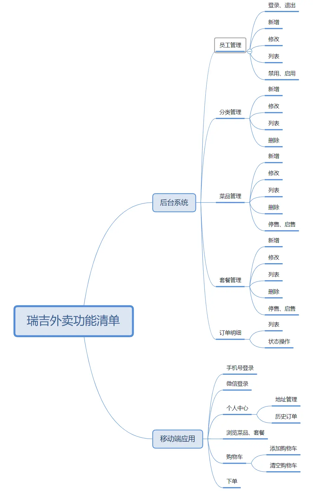 本项目(瑞吉外卖)是专门为餐饮企业(餐厅、饭店)定制的一款软件产品,包括系统管理后台和移动端应用两部分。其中系统管理后台主要提供给餐饮企业内部员工使用,可以对餐厅的菜品、套餐、订单等进行管理维护。移动端应用主要提供给消费者使用,可以在线浏览菜品、添加购物车、下单等。