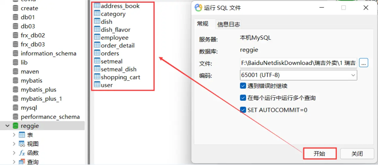 导入表结构,既可以使用上面的图形界面,也可以使用MySQL命令source sql文件的绝对路径通过命令导入表结构时,注意sql文件不要放在中文目录中