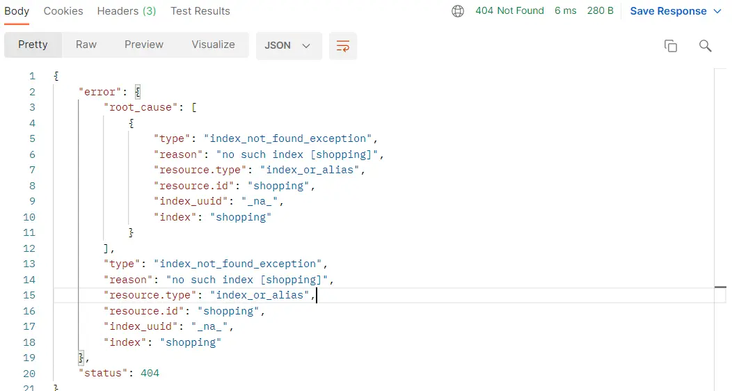 在 Postman 中,向 ES 服务器发 GET 请求 :http://127.0.0.1:9200/shopping
