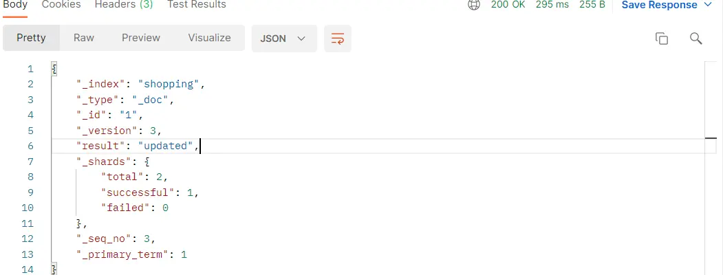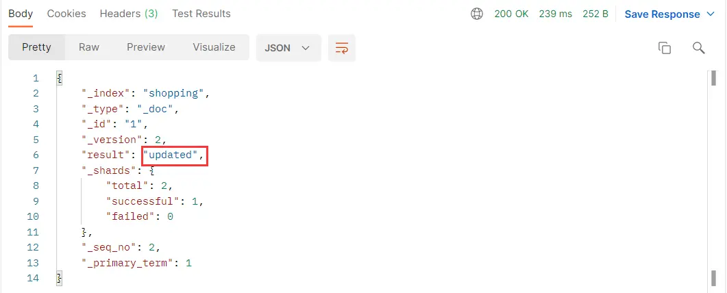 请求 :http://127.0.0.1:9200/shopping/_updata/1
