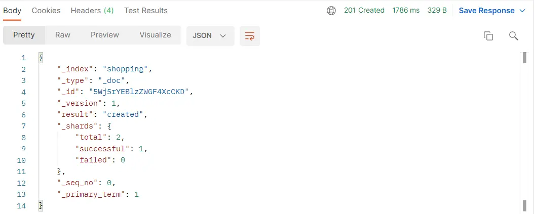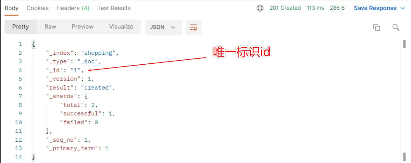 ,需要在创建时指定:http://127.0.0.1:9200/shopping/_doc/1
